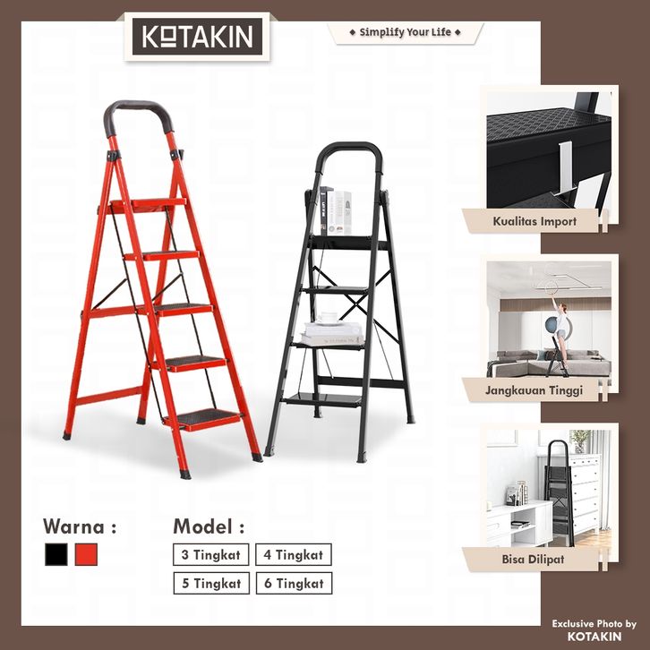 Tangga Rumah Lipat Besi 3 4 5 6 Step Household Steel Ladder Portable Anti Slip Merek KOTAKIN DISKON