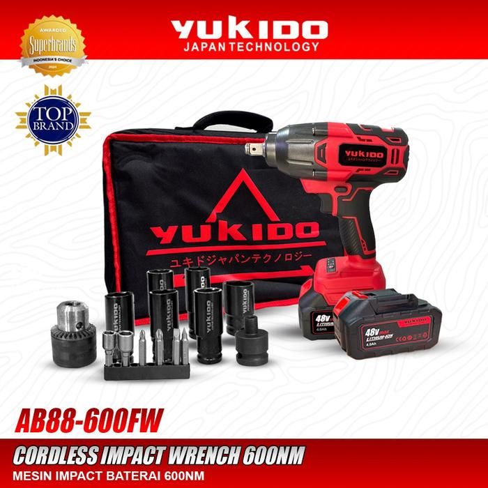 YUKDIO MESIN IMPACT PEMBUKA BAUT BATERAI 48V 600NM / CORDLESS IMPACT WRENCH 1/2" BRUSHLESS 48VF 600NM AB-888HD Torsi