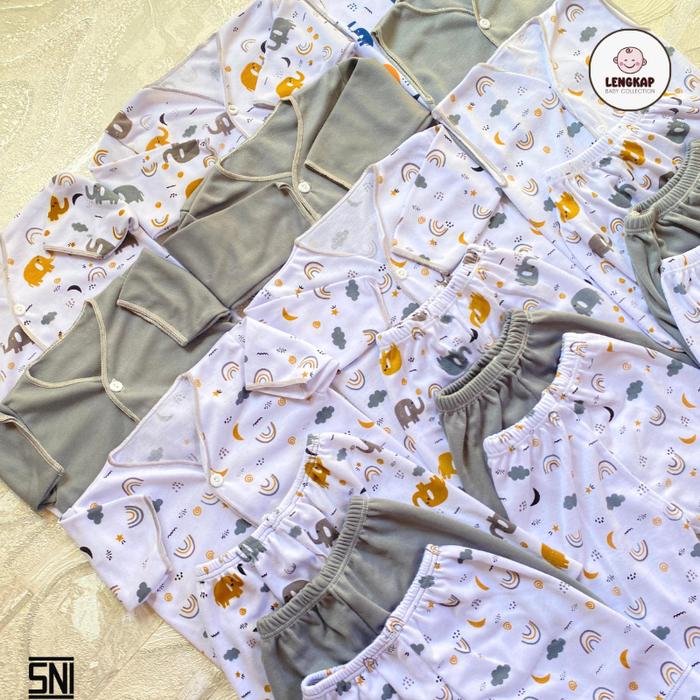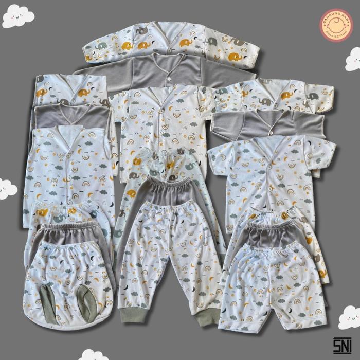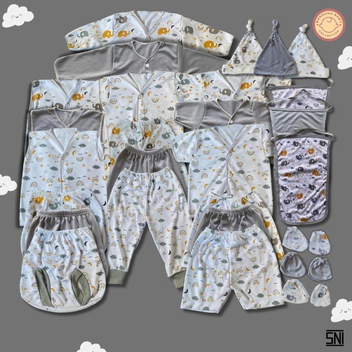 Paket Brojol Baju Bayi Newborn 27Pcs Seri Abu Motif Pelangi Gajah (Pembelian 27pcs Gratis Bantal/Guling)