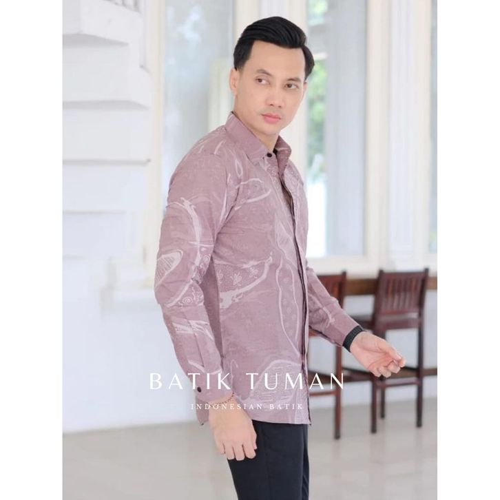 RANUPATI Soft Mauve Kemeja Batik Pria Lengan Panjang Warna Ungu Purple Taro Pastel Bahan Katun Berkualitas