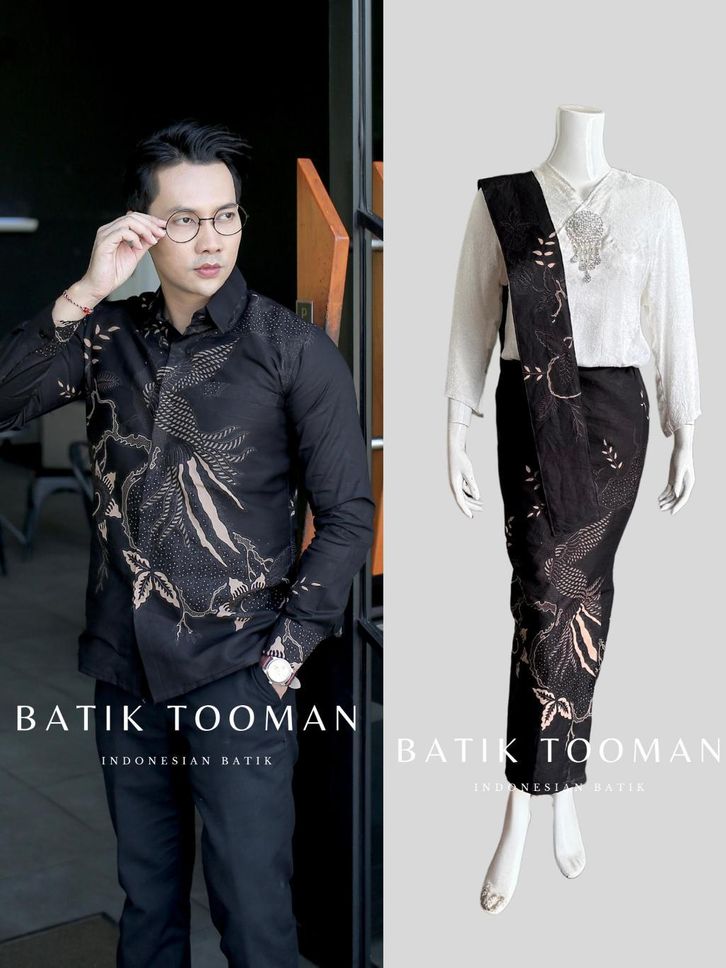 Peksi Tresno Couple Rok & Kemeja Batik Slimfit Warna Black Mocca Hitam Choco Bahan Katun Halus
