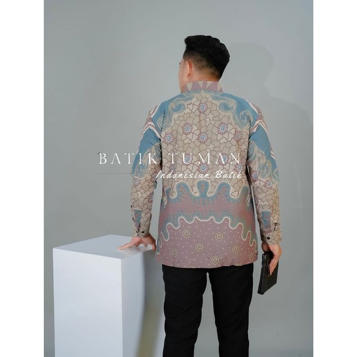 ARTIDJO SOFT BLUE MAUVE PASTEL Kemeja Batik Pria Bahan Katun Halus Kemeja Pria Lengan Panjang Berkualitas