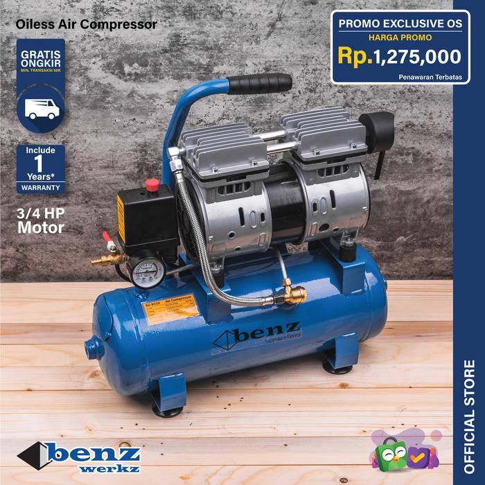 Mesin Kompresor Oiless 9L 3/4 HP / Oiless Air Compressor Benz Werkz