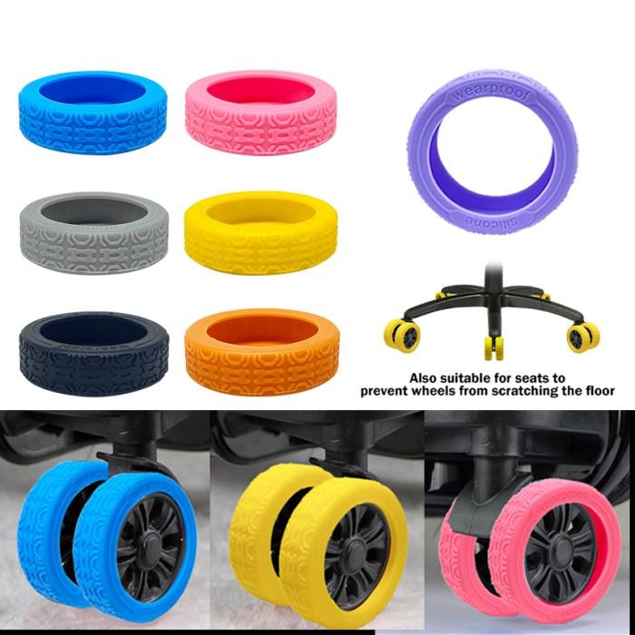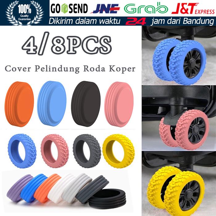 TERLARIS RING KARET RODA KOPER PENGGANTI SILIKON COVER PELINDUNG LUGGAGE WHEEL 4PCSHITAM