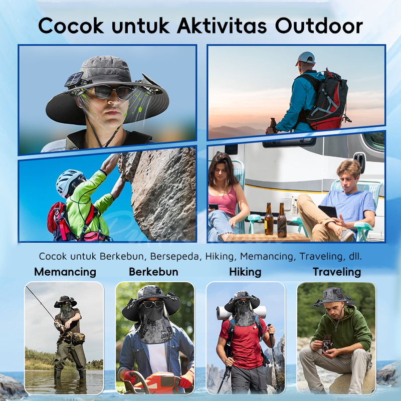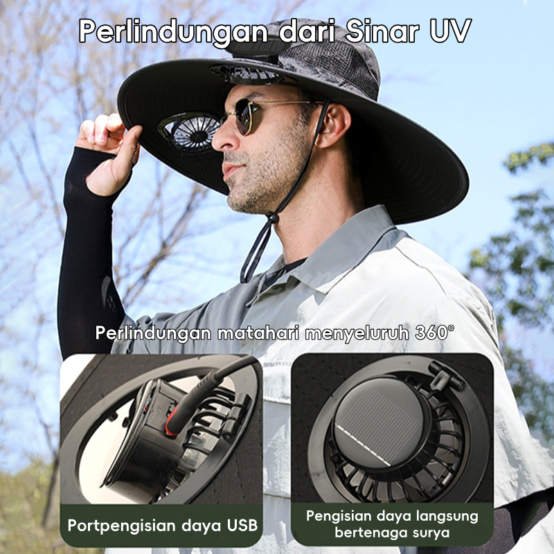 【】% PuffRumah Topi Mancing Multifungsi Fishing Hat Anti UV Outdoor Hat Import Solar Fan Hat Solar Powered Fan Hat Windpr