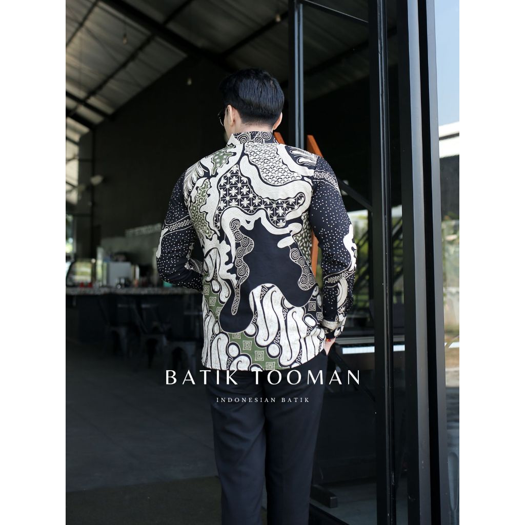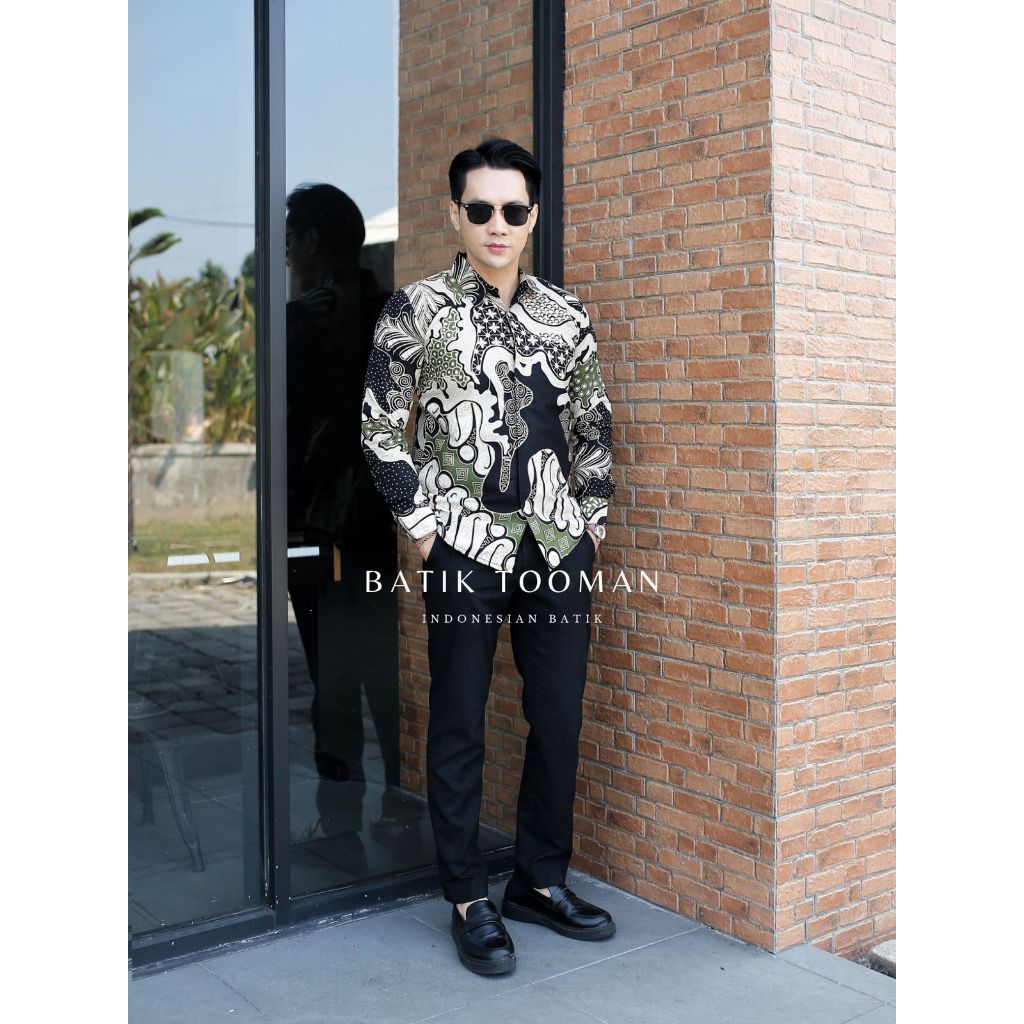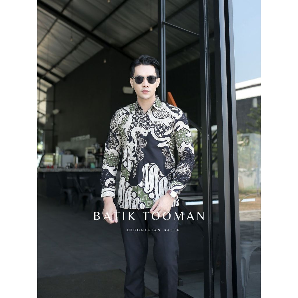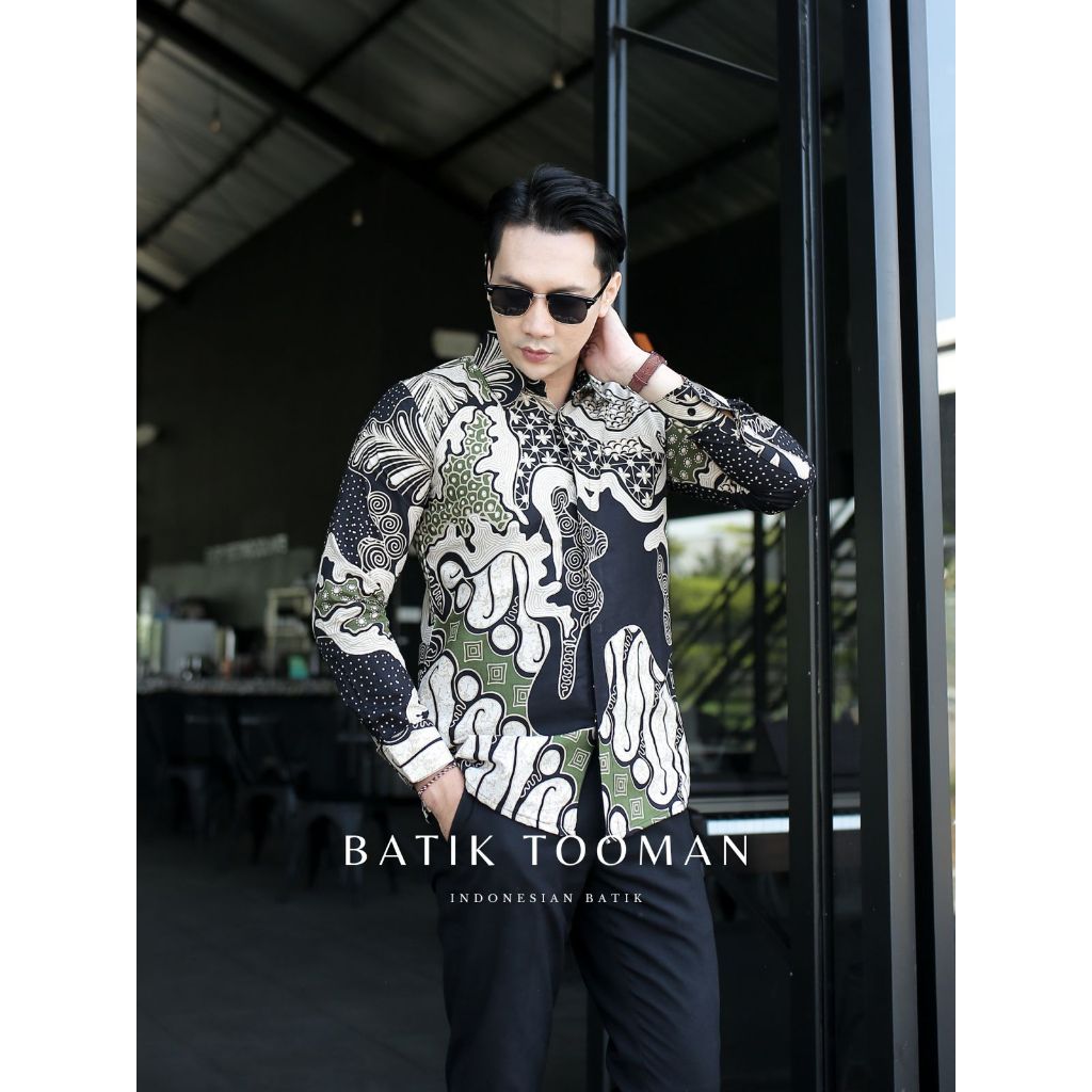 PARANG SAKTI Slimfit GREEN BLACK Baju Pria Kemeja Batik Kerja Lengan Panjang Warna Hijau Hitam Krem Cream Bahan Katun Ha