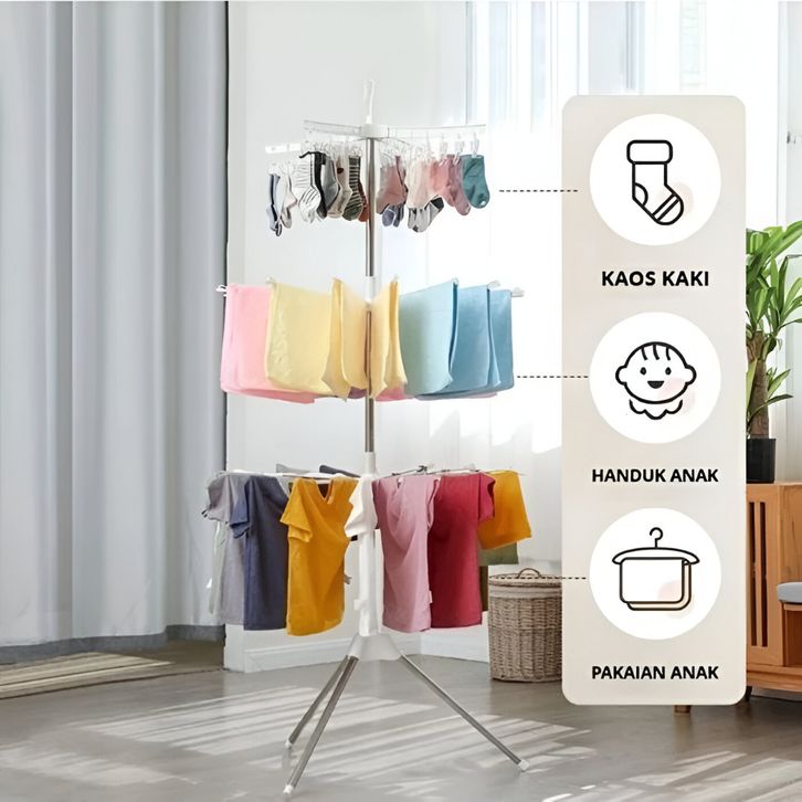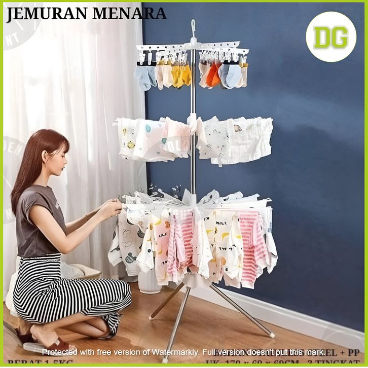 JEMURAN MENARA 3 TINGKAT / JEMURAN BAJU 3 LIPAT (16 JARI JARI ) 24 JEPITAN BAJU JEMURAN PAKAIN JEMURAN BESI ORIGINAL