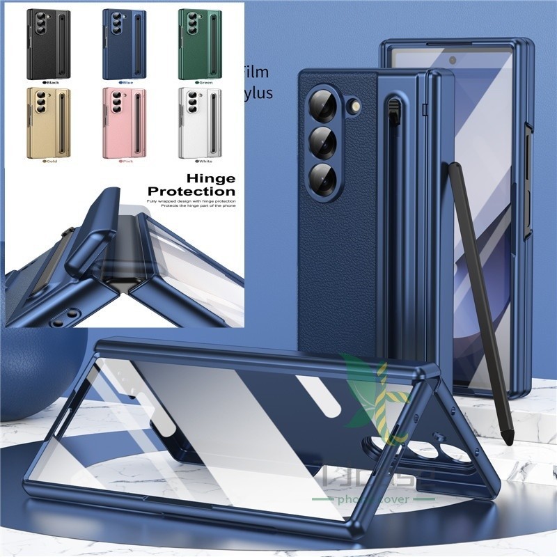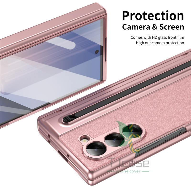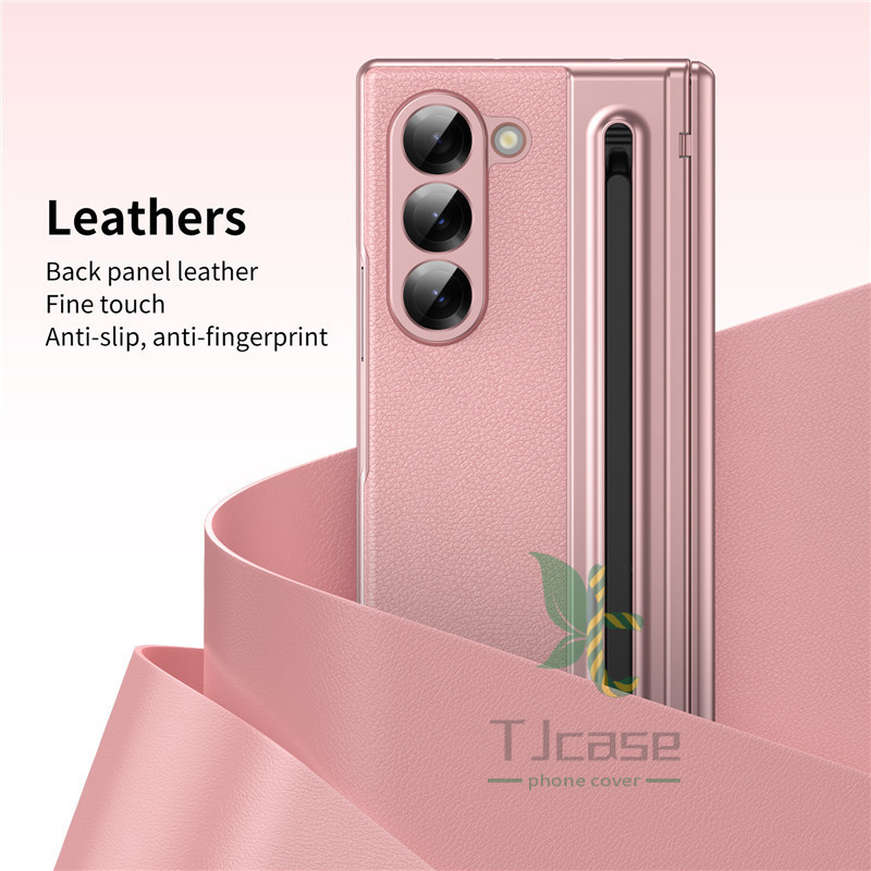 Plating S Pen Slot Hinge Full Leather Casing Cover Smasung Glaxy Z Fold 6 Z Fold 5 Z Fold 4 Z Fold 3 Flass Front Film Ca