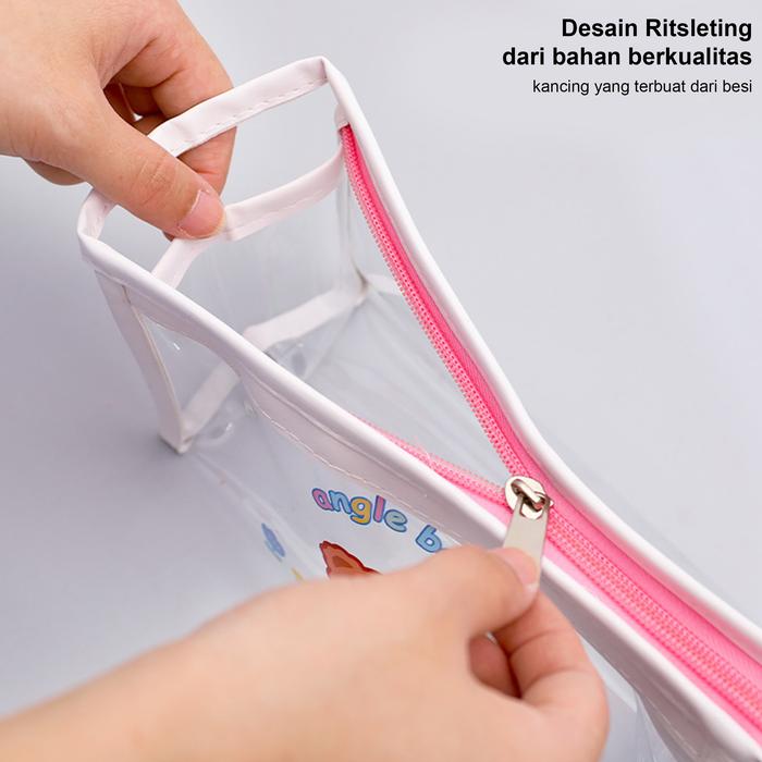 FLASH SALE POUCH KOSMETIK MIKA TRANSPARAN POUCH MAKE UP TEMPAT PENSIL PINK EDGE
