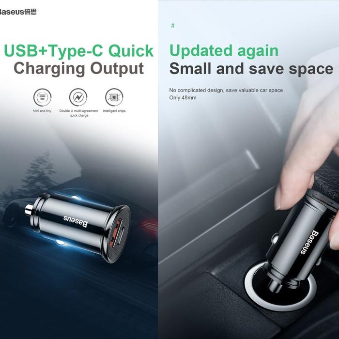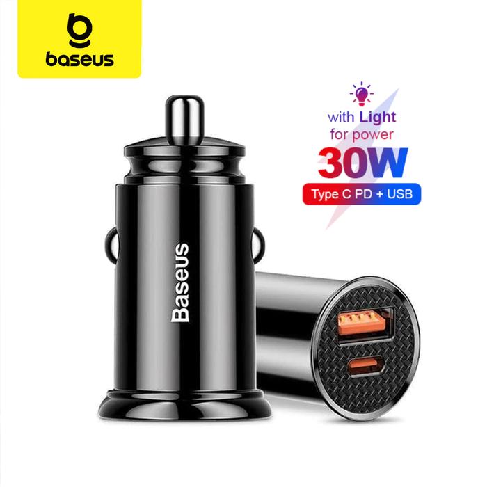 PROMO TERBATAS BASEUS CAR CHARGER 30W TYPEC PD30USB QUICK CHARGE 40 FAST CHARGING HITAM