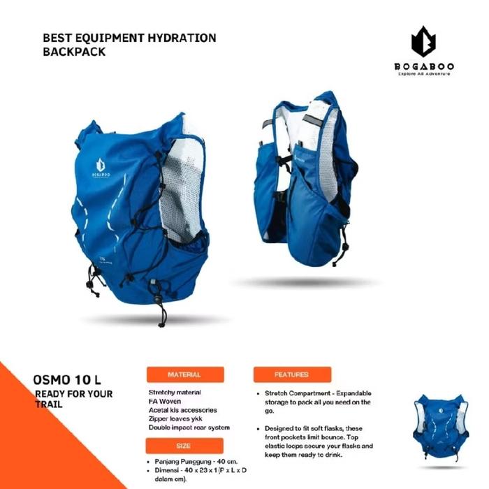 TERLARIS TAS HYDROPACK TRAIL RUNNING BOGABOO OSMO 10 L TAS LARI RUNNING TAS MOTOCROSS TAS SEPEDA WATER BLADDER VEST PRIA WANIT