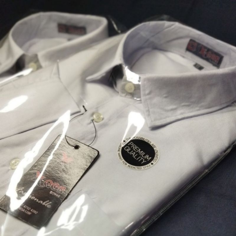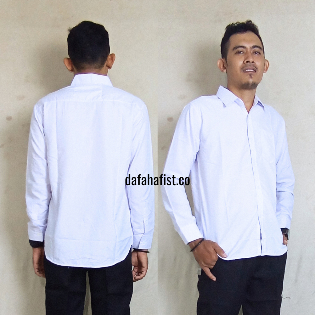 KEMEJA POLOS PRIA PUTIH LENGAN PANJANG HEM KERJA BAJU FORMAL ATASAN BAHAN KATUN PREMIUM