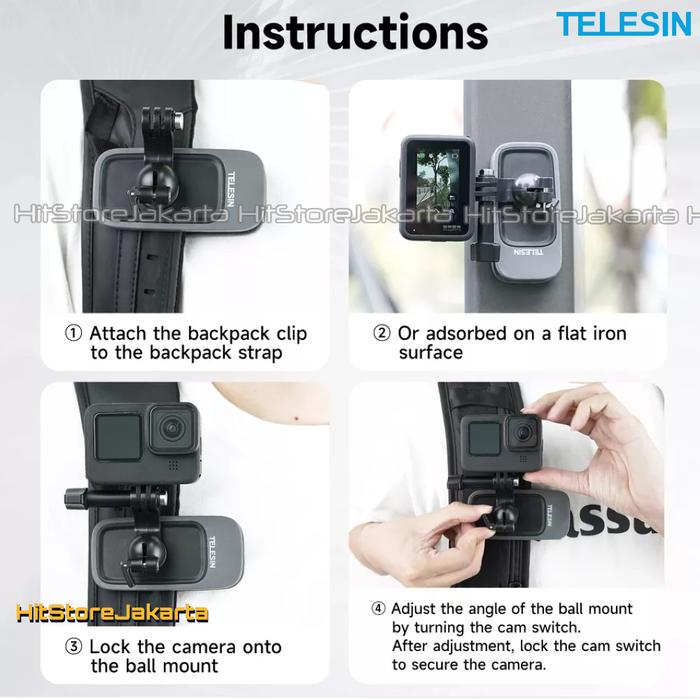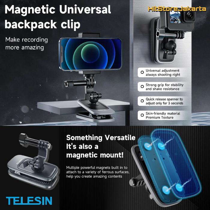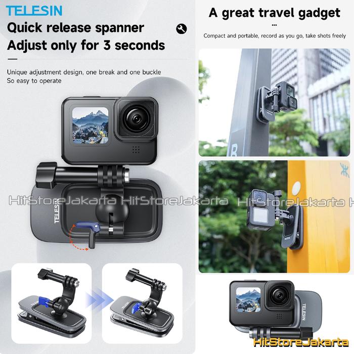FLASH SALE TELESIN MAGNETIC BACKPACK CLIP FOR GO PRO INSTA360 OSMO ACTION CAM MOUNTING JEPIT MAGNET