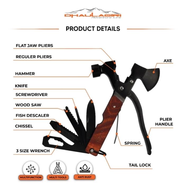 TERLARIS KNIFEZER MULTIFUNCTIONAL EDC AXE HAMMER SURVIVAL TOOLS PALU MARTIL