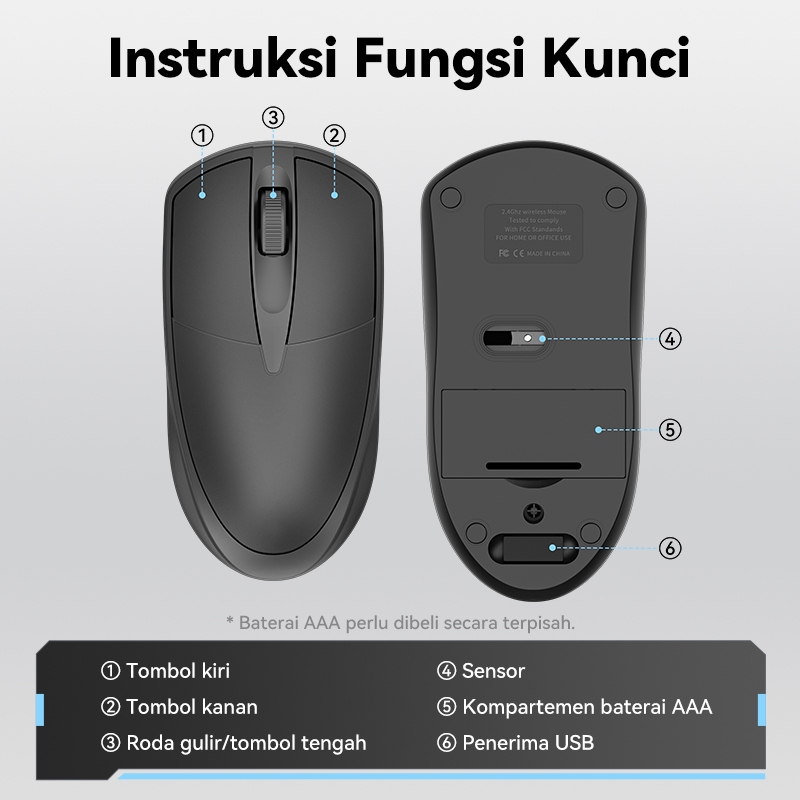 BASIKE Mouse Wireless 2.4Ghz 1600DPI dengan Receiver USB untuk PC Laptop Tablet Silent Mini
