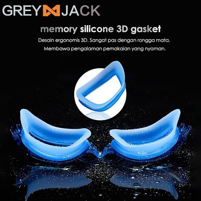 TERLARIS GREY JACK KACAMATA SPORT RENANG DEWASA ANTI FOG BAHAN TR90+SILICONE 3D RINGAN SWIMMING GOGGLES MIRROR LENS XR 2600 BLACK