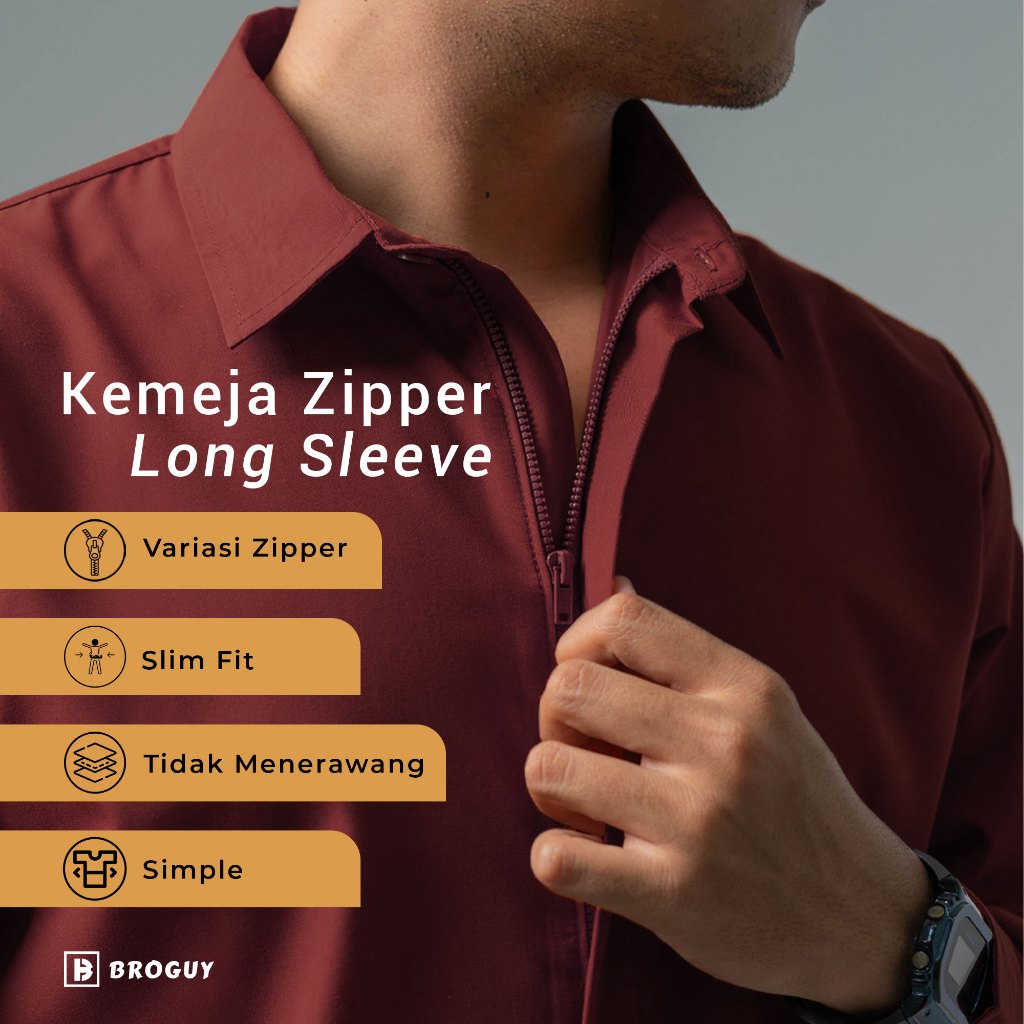 BROGUY KEMEJA ZIPPER PRIA SIMPLE LENGAN PANJANG