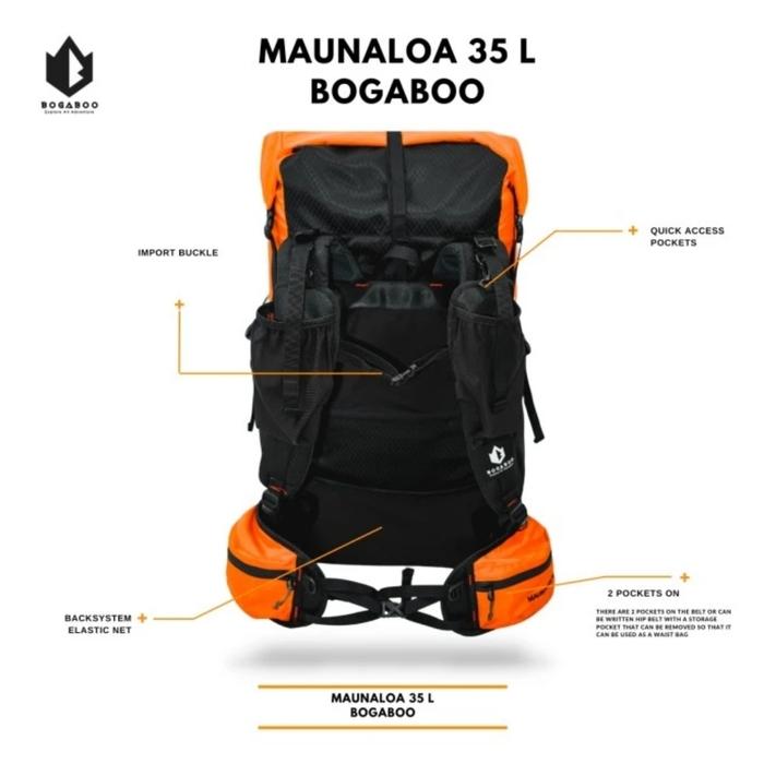 TERLARIS TAS GUNUNG ULTRALIGHT BACKPACK BOGABOO MAUNALOA 35L WATERPROOFTOSCA