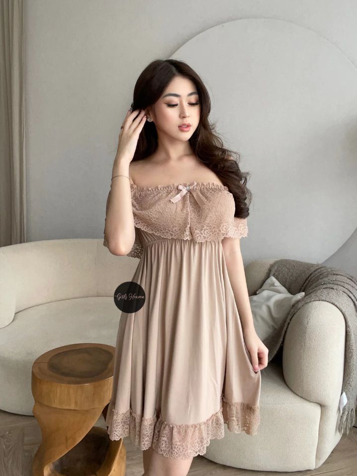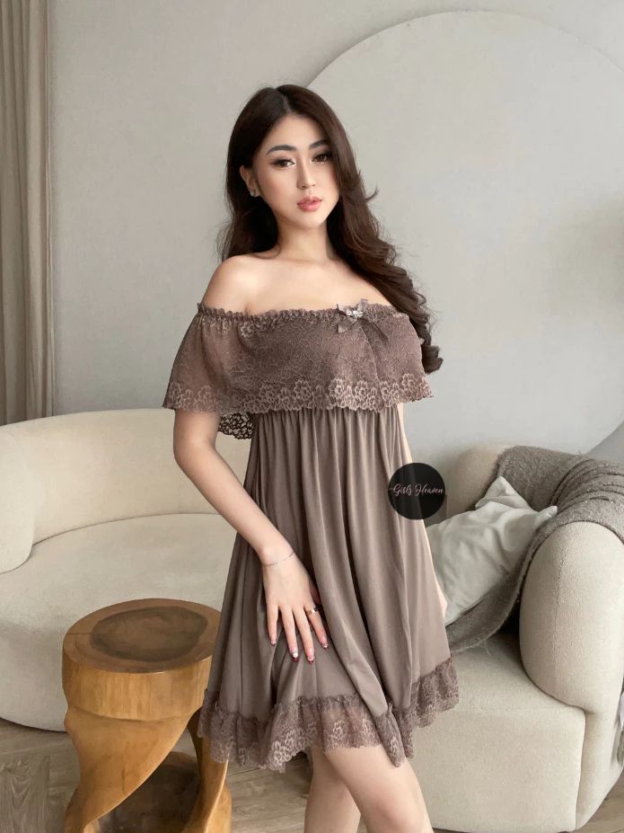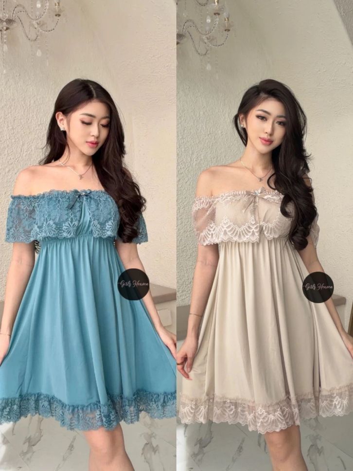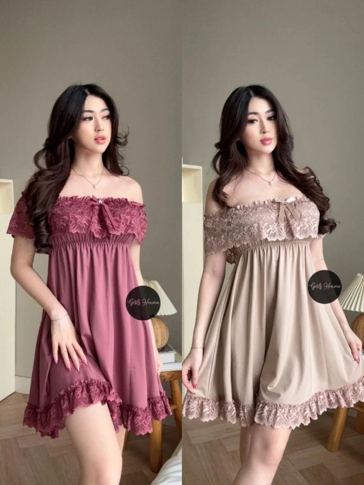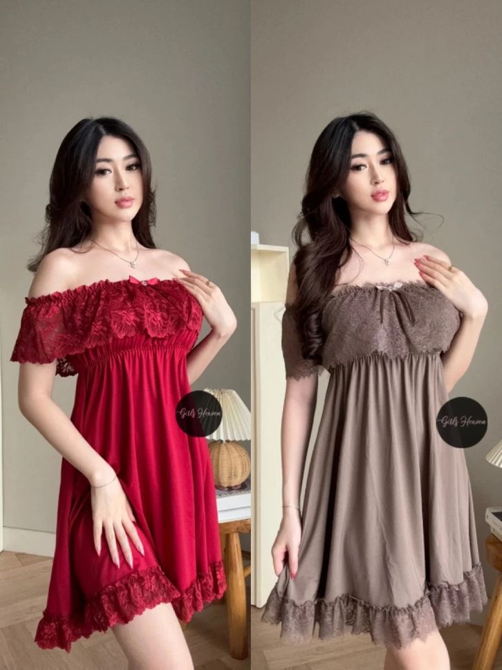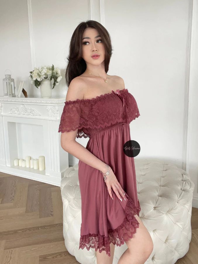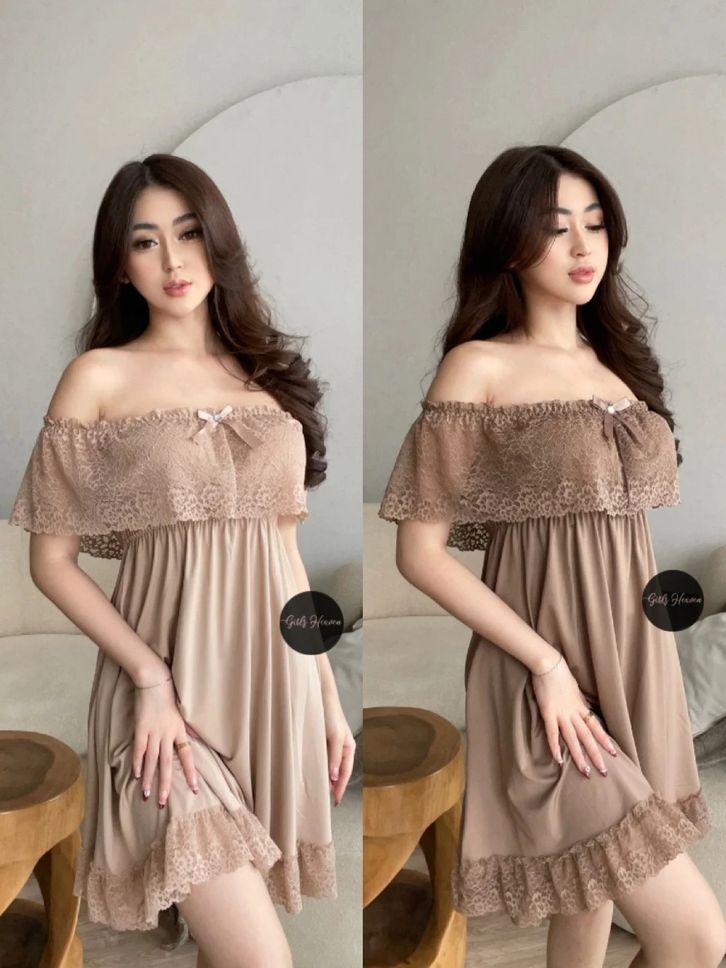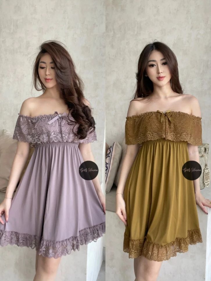 Lingerie Dress Wanita Dewasa Spandex Sabrina Lengan Pendek Renda Tipis 010