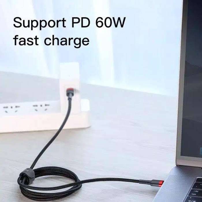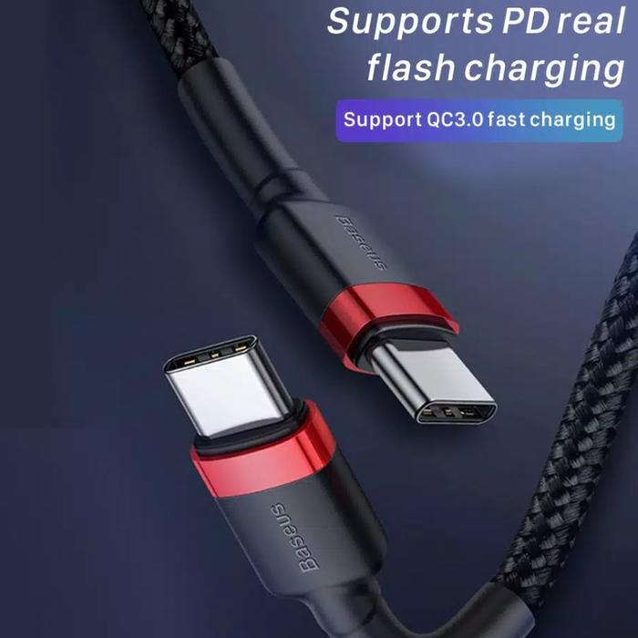 PROMO TERBATAS BASEUS CAFULE KABEL DATA CHARGER TYPE C TO TYPE C FAST CHARGING PD20 60W QC30 (20V 3A) RED