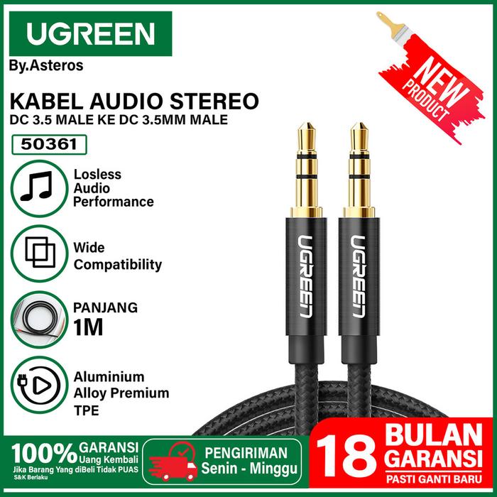 PROMO TERBATAS UGREEN KABEL AUX AUDIO JACK 35MM MALE TO MALE AUDIO STEREO 50361 1METER