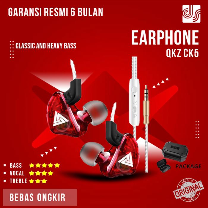 PROMO TERBATAS QKZ CK5 EARPHONE CLASSIC AND HEAVY BASS WITH MIC INEAR HIFI MERAH