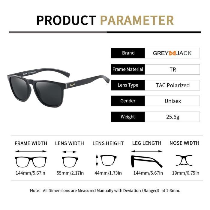 TERLARIS GREY JACK KACAMATA HITAM SUNGLASSES POLARIZED ANTI UV ANTI SILAU TR90 MODEL KOTAK FASHION PRIA DAN WANITA SIMPLE ELEGANT