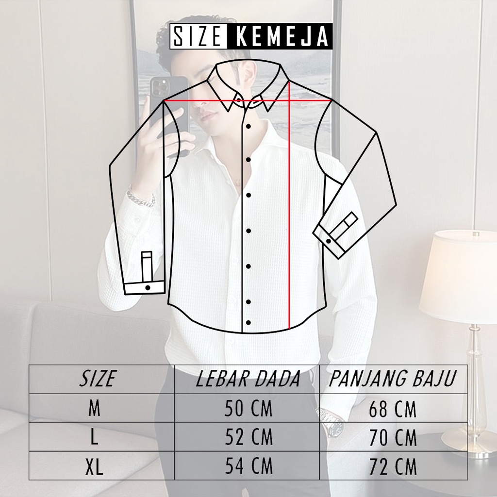 SAFA FACTORY - KEMEJA PRIA WAFFLE KNIT BAJU ATASAN PRIA LENGAN PANJANG MOTIF POLOS SLIMFIT PUTIH