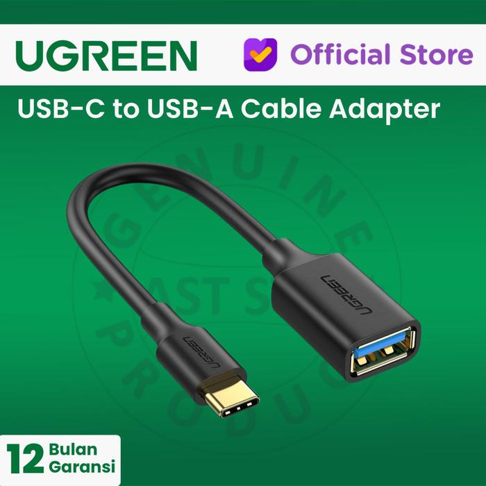 PROMO TERBATAS UGREEN KABEL OTG CONVERTER ADAPTER TYPE C MALE TO USB FEMALE US154 HITAM