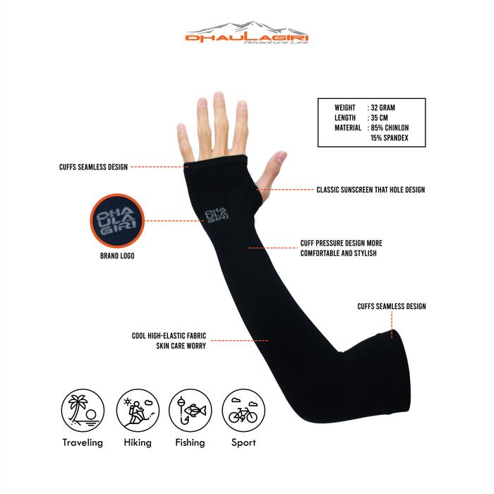 TERLARIS DHAULAGIRI MANSET OLAHRAGA ARM SLEEVE COOLMAX 30 UPF+ THUMB H0LE LUBANG JEMPOL MANGSET HIKING SEPEDA CAMPING HIJAB COOL AN