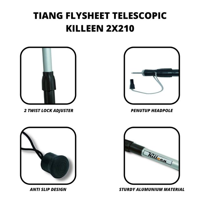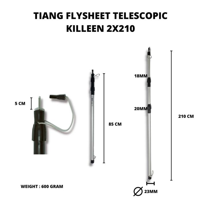 TERLARIS TIANG FLYSHEET TELESCOPIC TELESKOPIK AWNING DOUBLE POLE 2X210CM PENYANGGA LAYER BIVAK SET BIVAC KANOPI CAMPING 3 STEP SHEL