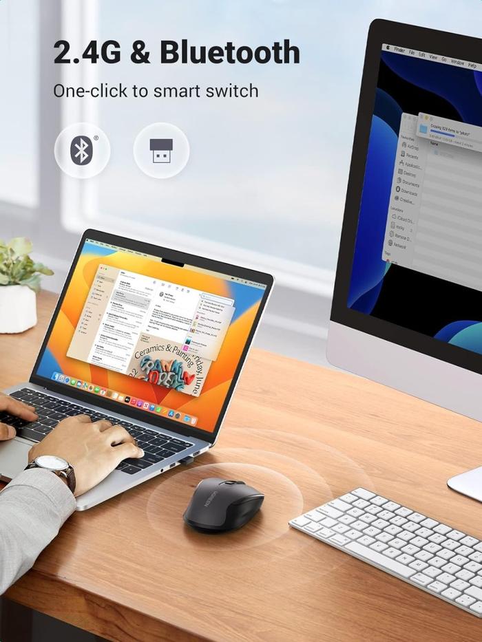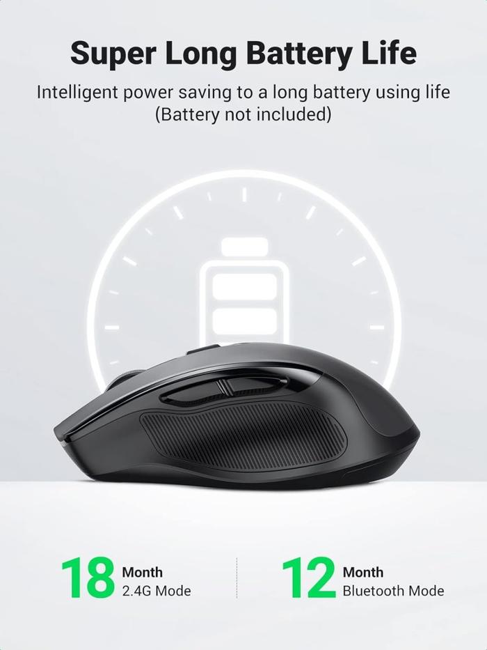 PROMO TERBATAS UGREEN MOUSE GAMING WIRELESS 24G BLUETOOTH SILENT CLICK 4000 DPI 90855 DONGLEBT
