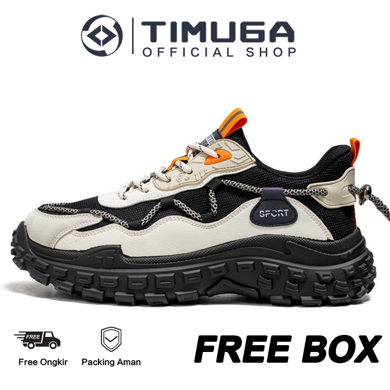 TIMUGA Sepatu Olahraga Pria Casual Sneakers Outdoor Sport Sepatu Hiking Cowok Jalan KSR718