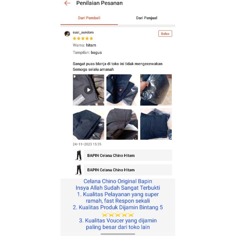 BAPIN CELANA CHINO PANJANG SLIMFIT PRIA ORIGINAL HITAM