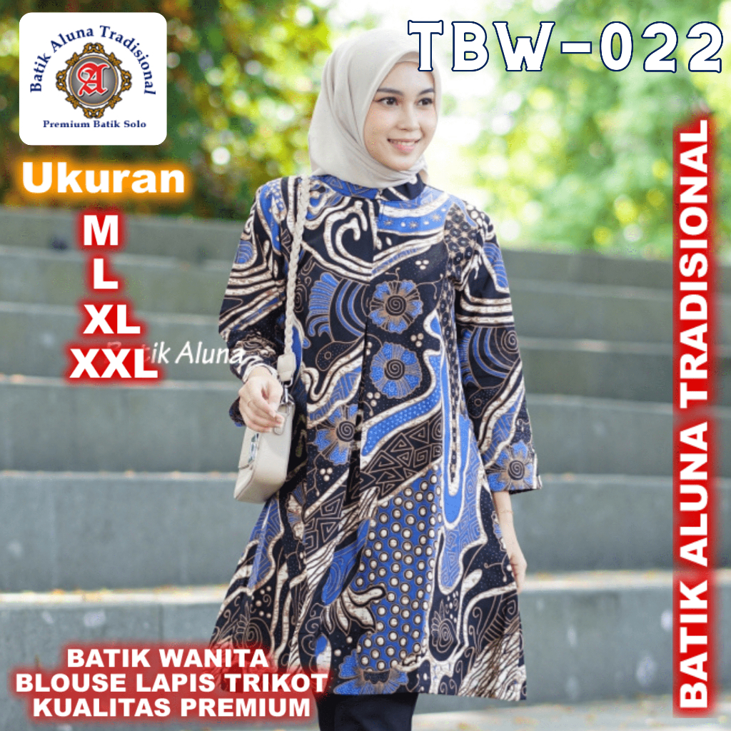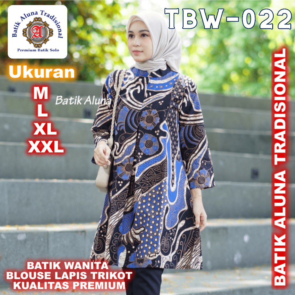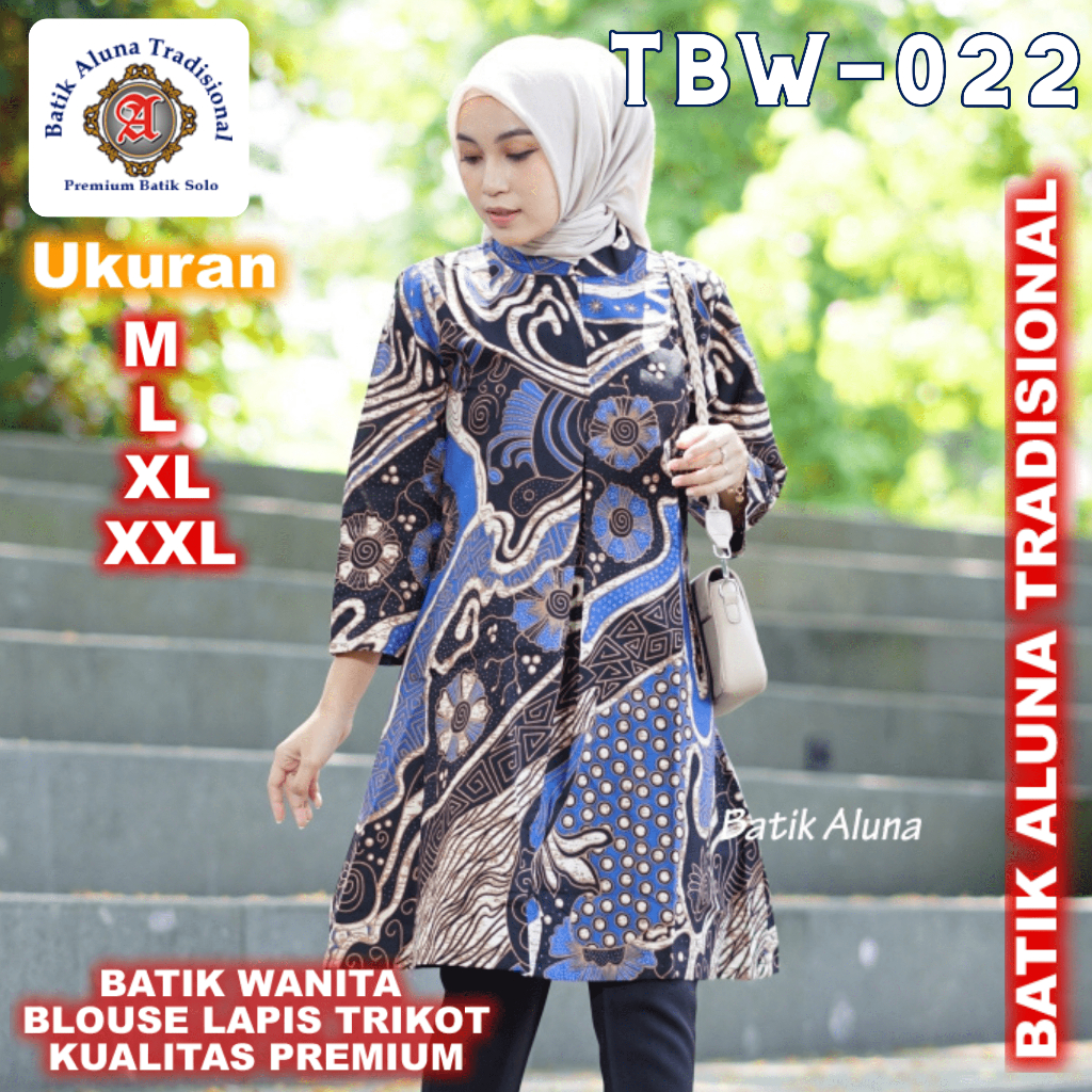 Baju Batik Wanita Tunik Blouse Premium Lapis Trikot Aluna TBW 022