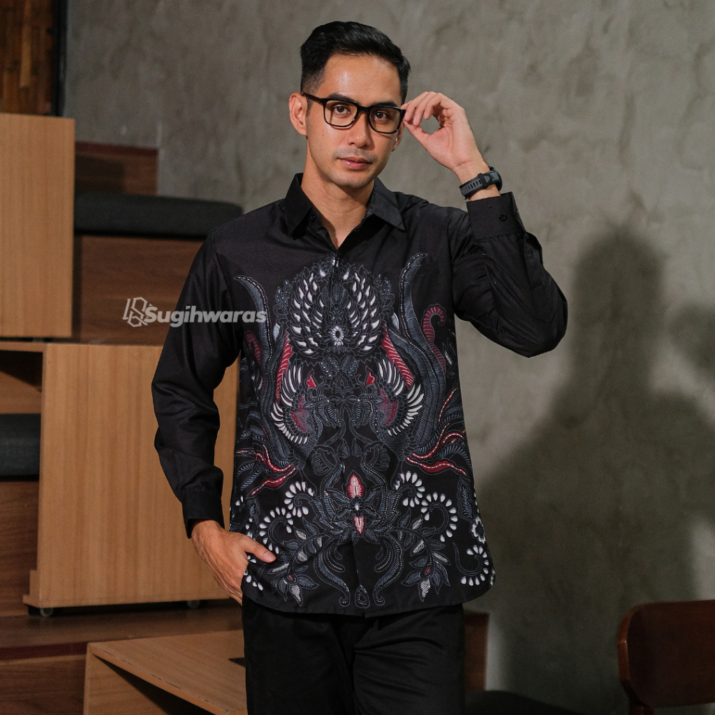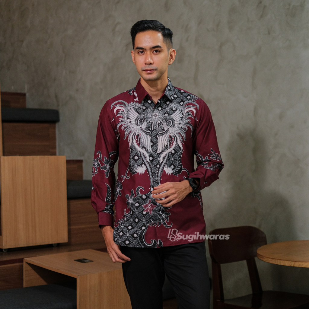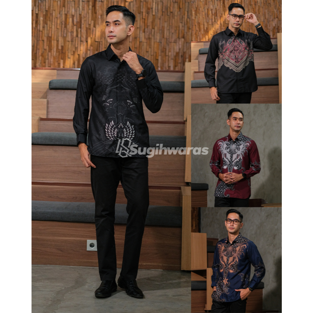 SUGIH WARAS BATIK MERAK HB-269 Atasan Baju Kemeja Batik Premium Pria Cowok Laki Laki Lengan Panjang Pendek Slim Fit Lapi