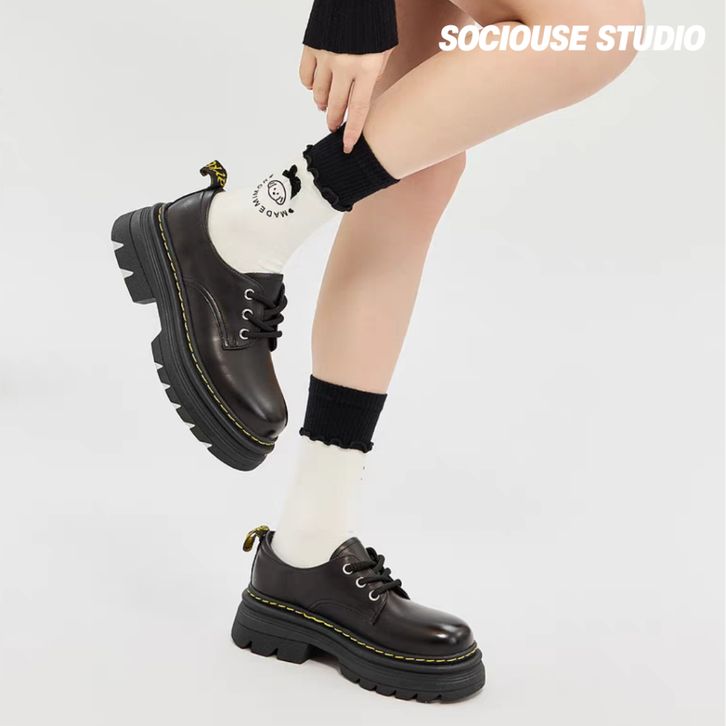 Sociouse Judith Sepatu Docmart Wanita Loafers Vintage Korean Style Hitam - Low Boots Kasual Formal Kantor Kerja -