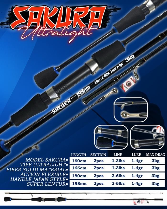 Joran Ultralight Sakura Bahan Fiber Solid Joran UL Lure 1-4gr Pancing - 150