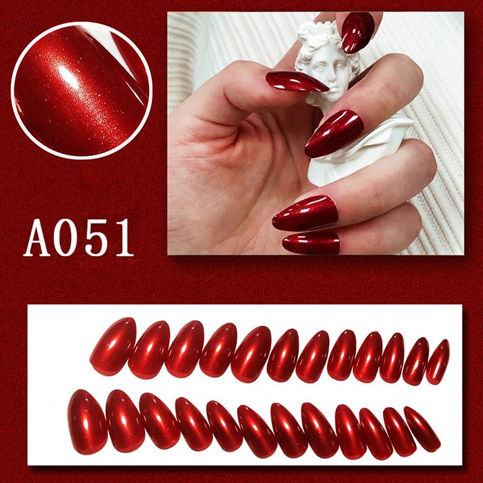 c06 Kuku Palsu nail art aesthetic dan lem wisuda 24pcs LONG RED GLOSS (XMAS EDITION) tangan - A051 Standar
