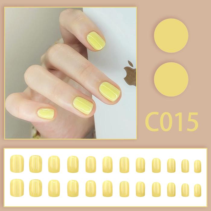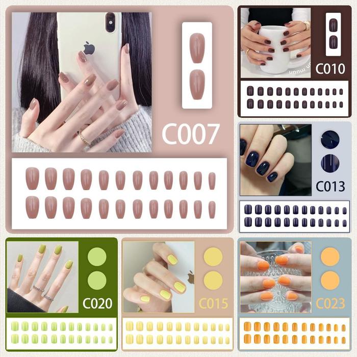 c06 Kuku Palsu Nail Art Aesthetic Wisuda 24pcs Tangan Pewarna Tidak Ada Lem Cair Polish - C007 TIDAK ADA LEM CAIR