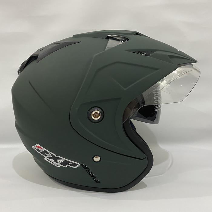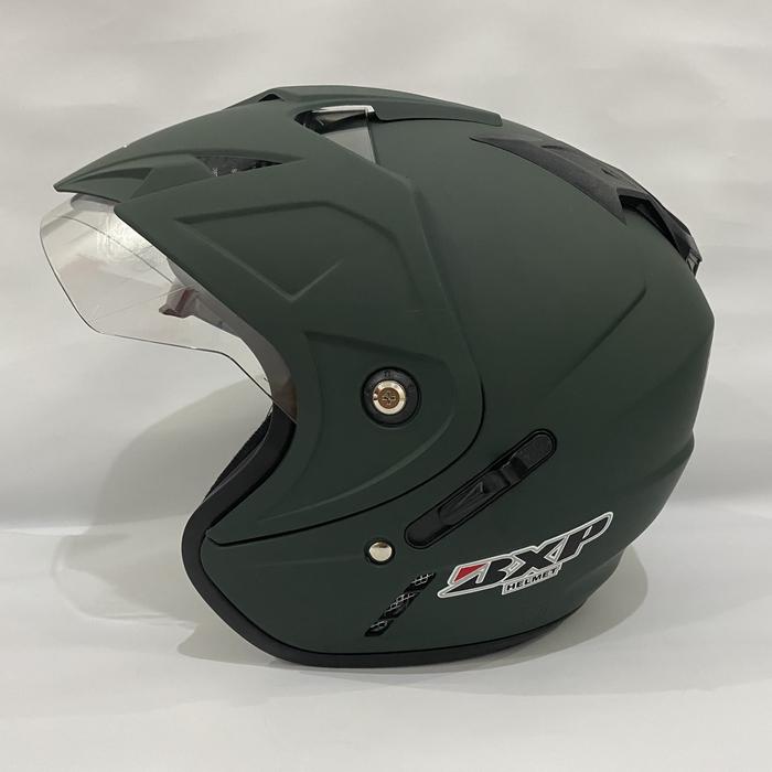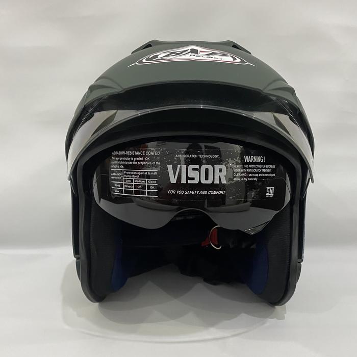Helm JP7 Hijau Army Doff Solid Double Visor Dua Kaca Helm SNI Helmet Dewasa
