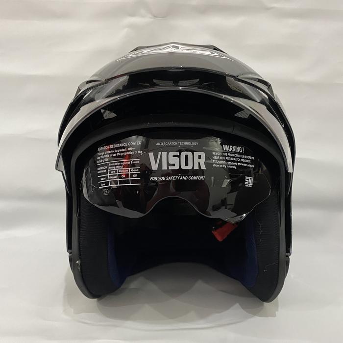 Helm JP7 Hitam Glossy Solid - Double Visor - Dua Kaca - Helem SNI - Helmet Dewasa