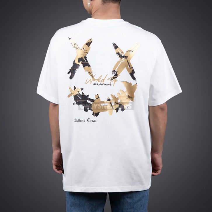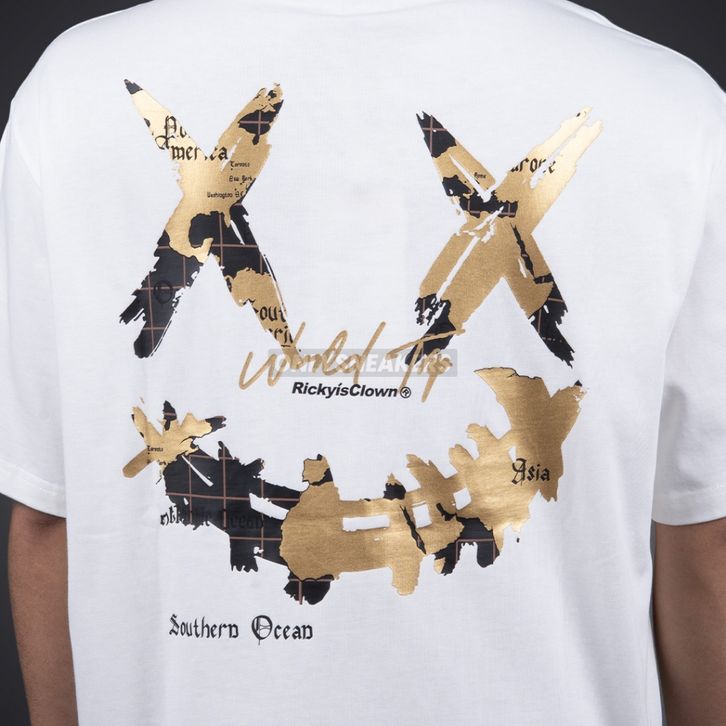 RICKY IS CLOWN GOLD WORLD MAP WHITE TEE