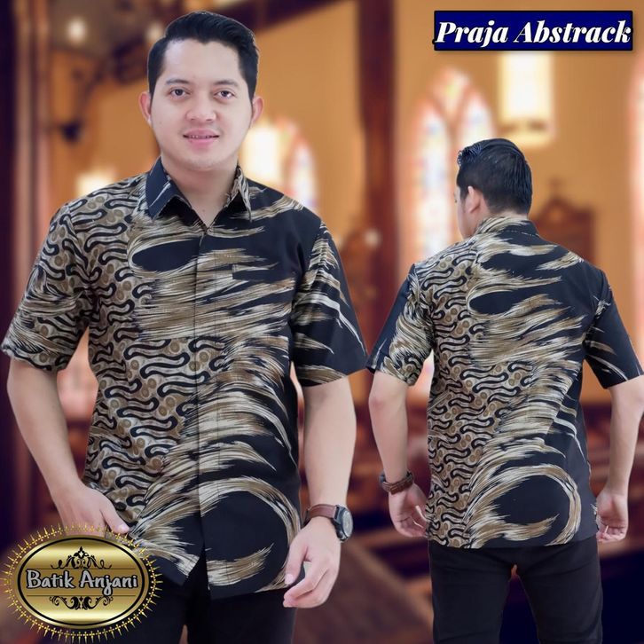 PRAJA ABSTRAK Kemeja Batik Pria Lapis Furing Katun Primisima Batik Solo Kemeja Pria Lengan Pendek