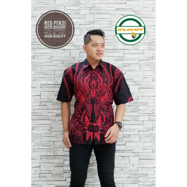 Red Peksi Kemeja batik pria full furing katun primisima batik solo batik pria eksklusif batik merah