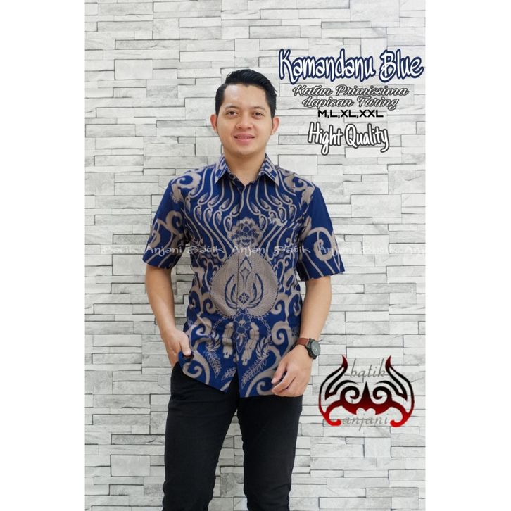 KAMANDANU BLUE NAVY Kemeja Batik Pria Lapis Furing Batik Warna Navy Dongker Kemeja Pria