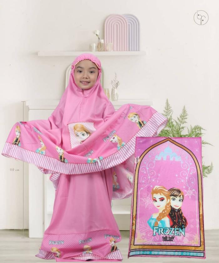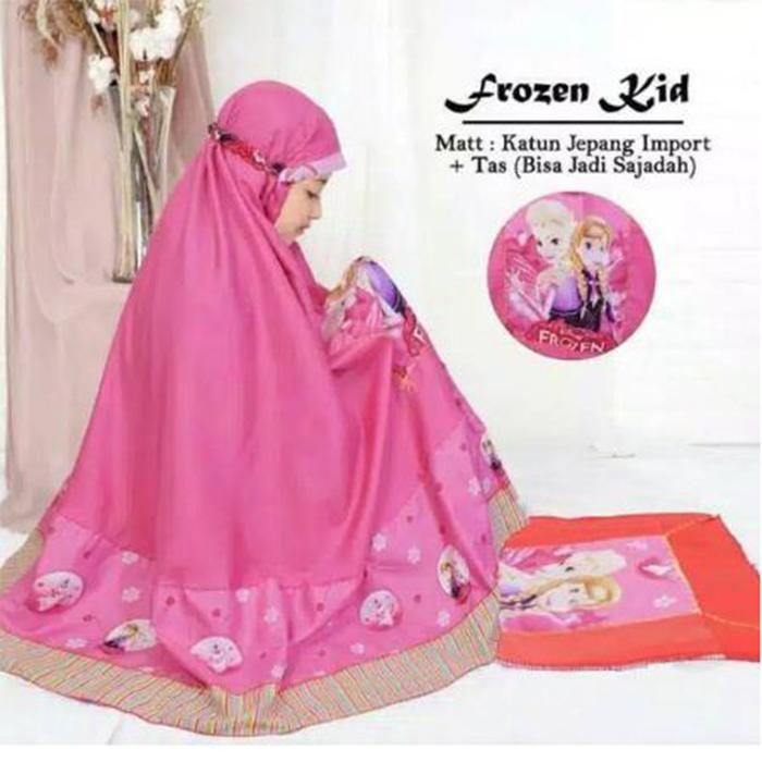Terlaris Mukena Anak Umur 2-10 tahun Motif Frozen kids ada sajadah dan tas Bahan Katun - pink S (2-4) Tahun Elegan