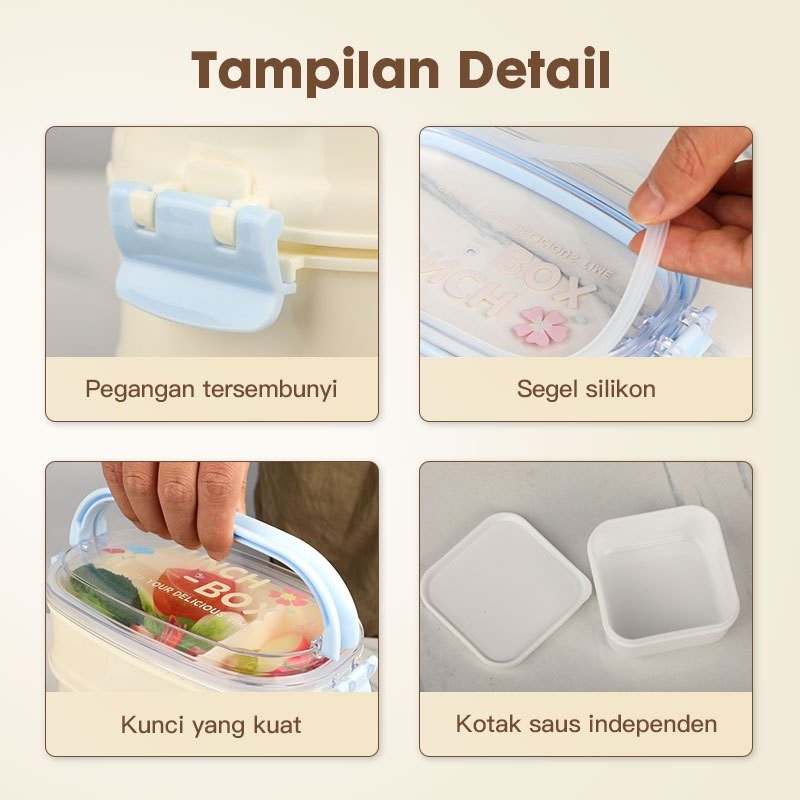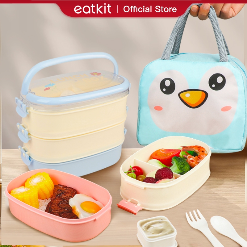Eatkit Kotak Makan 2 Tingkat 1600ml Sauce Cup Lunch Box Set Double Layer Rantang Susun BPA Free