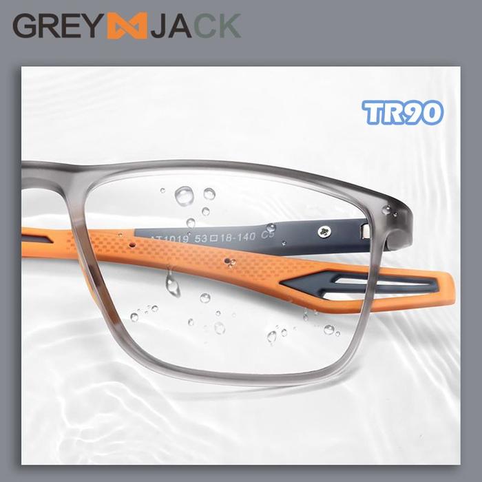 TERLARIS GREY JACK KACAMATA SPORT KOTAK TANGKAI LENTUR TR90 BISA MINUS 1019 GREY ORANGE MIN ANTIRADIASI