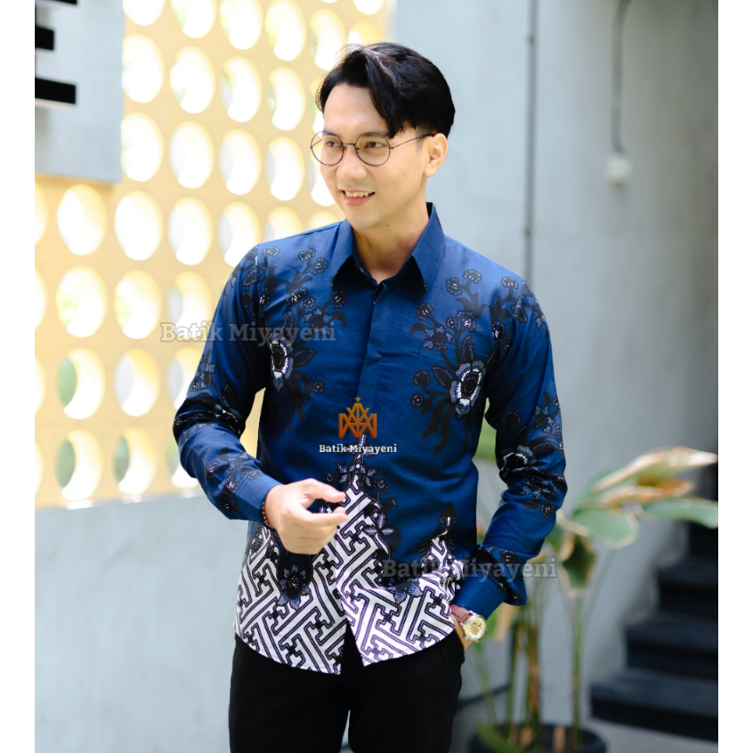 NALENDRA kemeja batik pria lengan panjang slimfit premium lapis furing